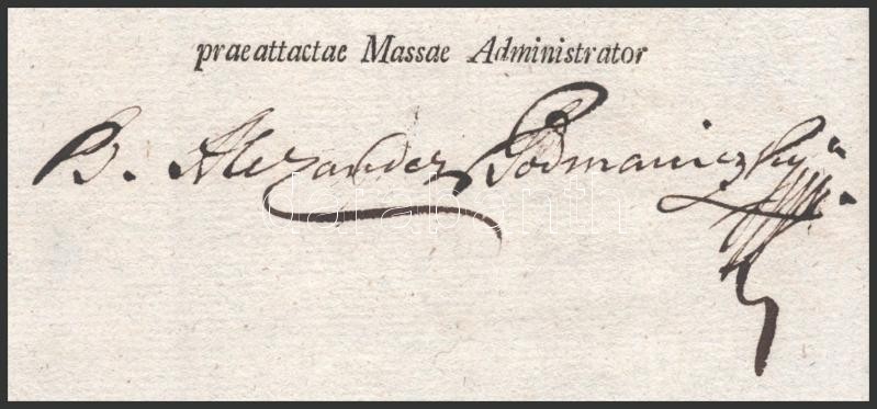 Leírás: 1828 Báró Podmaniczky Sándor által gróf Wartensleben Károlynak adott és saját kézzel aláírt kölcsön latin nyelvű nyugtája, szép állapotban