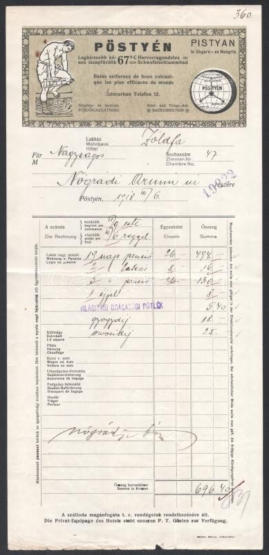 1918 Pöstyén, leghíresebb kénes iszapfürdők fejléces számla https://www.darabanth.com/hu/424-Gyorsarveres/424.0/Mutargy-papirregiseg-egyeb/Okmanyok~500018/1918-Postyen-leghiresebb-kenes-iszapfurdok-fejleces-szamla~II2698809