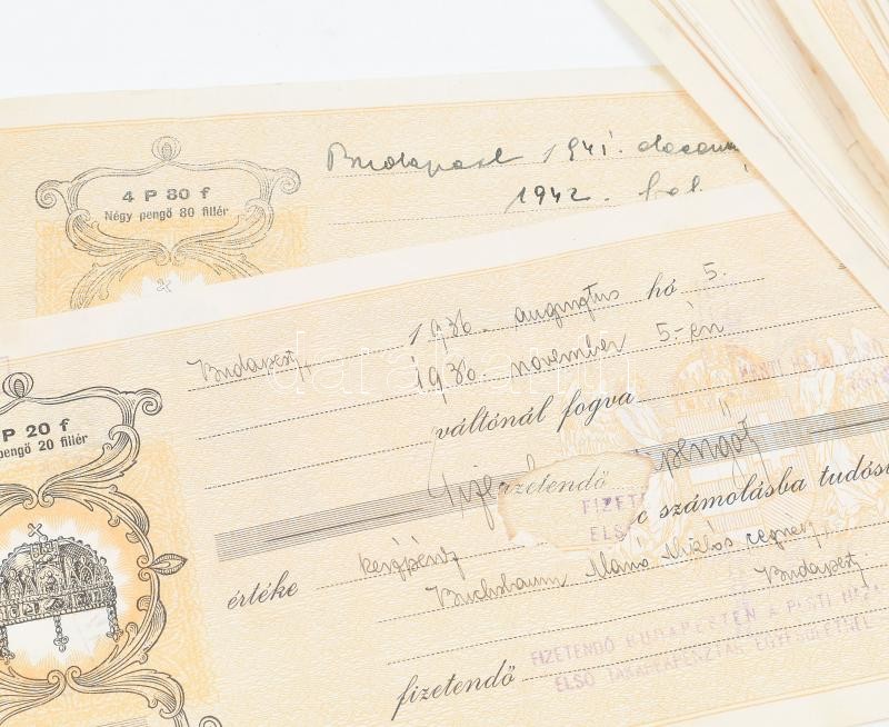 1935-1942 26 db váltó, közte sérültek is. https://www.darabanth.com/hu/424-Gyorsarveres/424.0/Mutargy-papirregiseg-egyeb/Okmanyok~500018/1935-1942-26-db-valto-kozte-serultek-is~II2701214