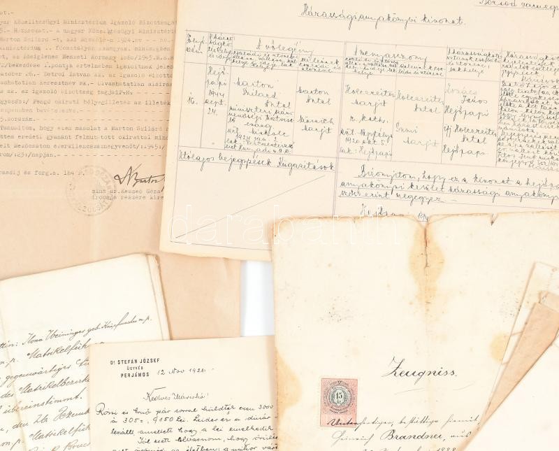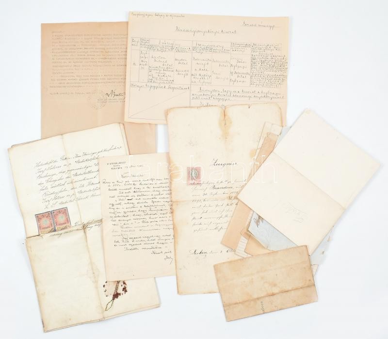 Leírás: cca 1880-1920 kb 15 db okmánybélyeges okmány vegyes témában