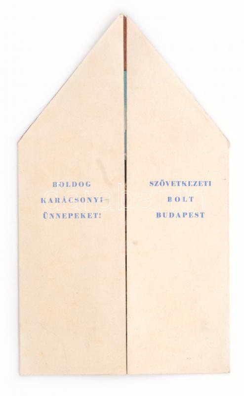 Leírás: cca 1930 Boldog Karácsonyi Ünnepeket, Szövetkezeti Bolt reklám prospektus, 20x12 cm, kihajtva: 24x20 cm