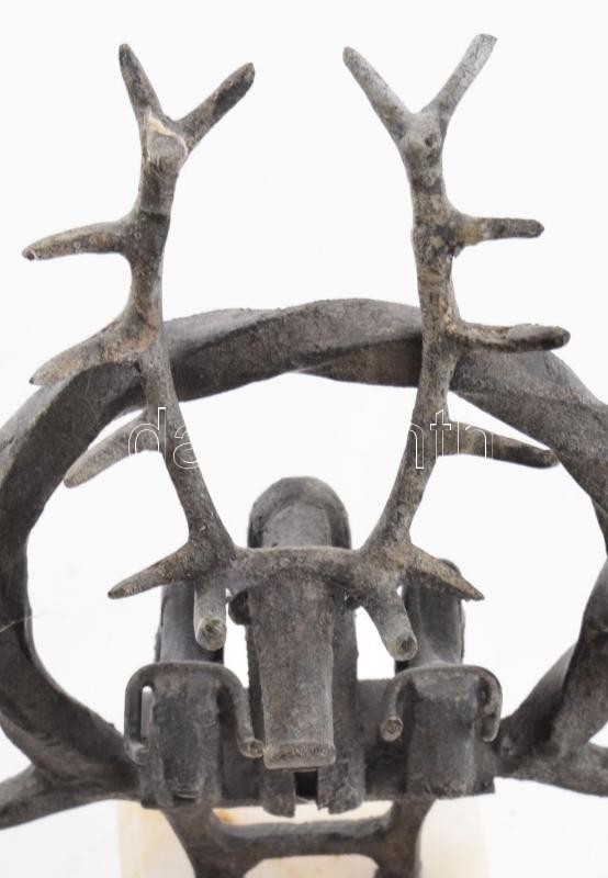 Leírás: Jelzés nélkül, szarvasok, fém, márvány talapzaton, kopott, m: 17 cm