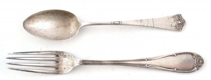 Leírás: 2 db dianás ezüst (Ag) villa és kanál. 65 g Jelzett