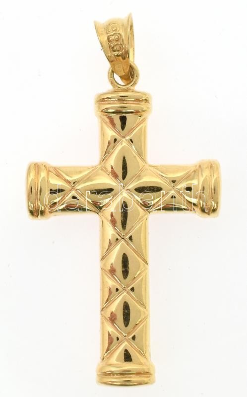 Arany (Au) 14 K mintás kereszt függő, jelzett, 3,2×1,6 cm, nettó: 1,2 ... https://www.darabanth.com/hu/424-Gyorsarveres/424.0/Nemesfem-disztargyak-ekszerek-dragakovek/Nemesfem-disztargyak-ekszerek-dragakovek~2000023/Arany-Au-14-K-mintas-kereszt-fuggo-jelzett-3-2C3971-6-cm-netto-1-2-g~II2698458