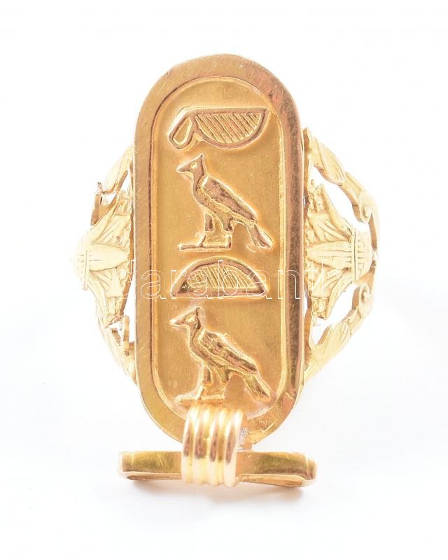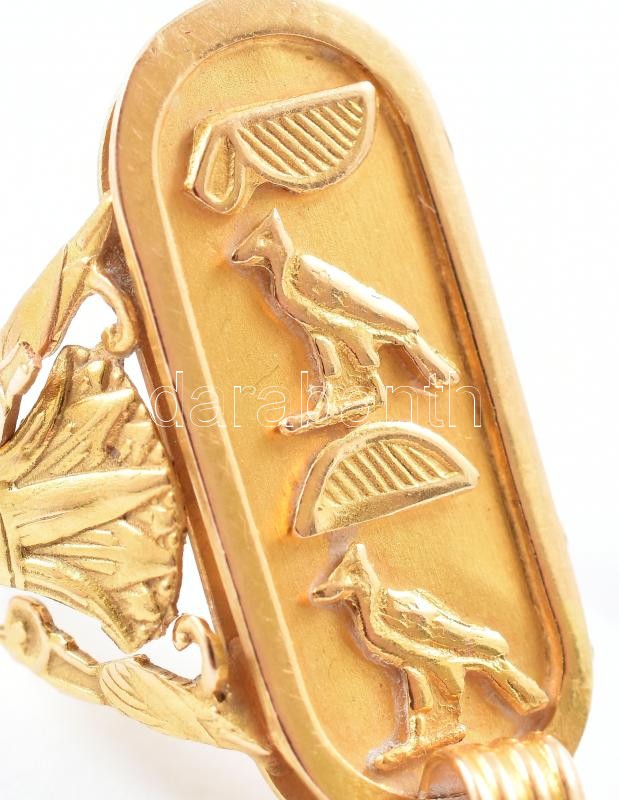 Leírás: Arany (Au/14k) egyiptomi motívumos gyűrű, jelzett, erősen sérült m: 53 nettó: 4,9g