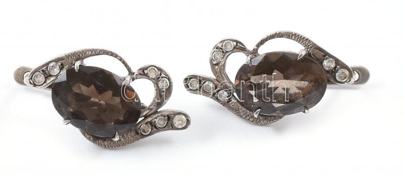 Leírás: Ezüst (Ag) fülbevaló, füsttopáz ékítéssel, jelzett, bruttó: 6,9g