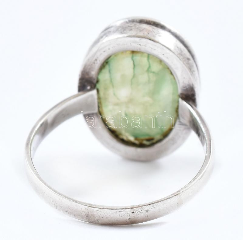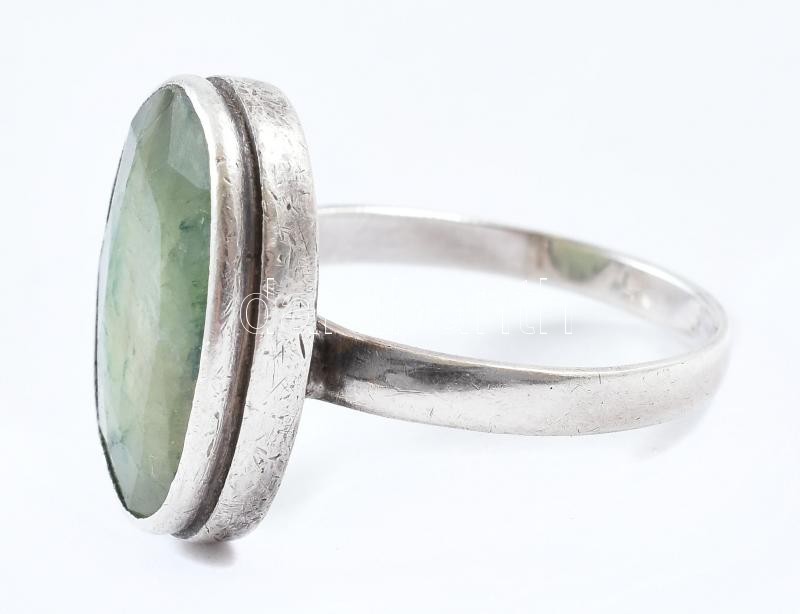 Leírás: Ezüst (Ag) gyökérsmaragddal ékített gyűrű, m: 62, bruttó: 6g