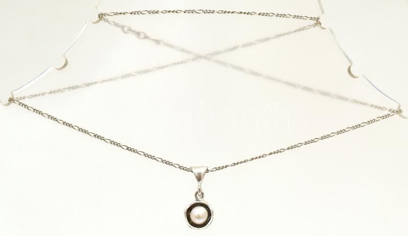 Leírás: Ezüst (Ag) nyaklánc, tenyésztett gyöngyös medállal, h: 44 cm jelzett, bruttó: 2,59g