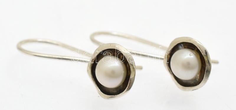 Leírás: Ezüst (Ag) tenyésztettgyöngyös fülbevaló, jelzett, bruttó: 2,09g