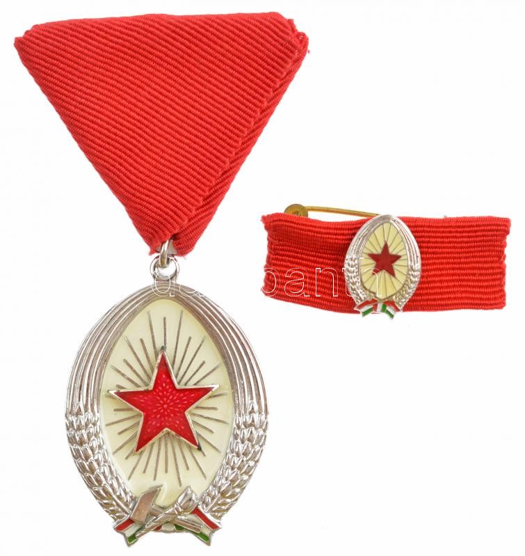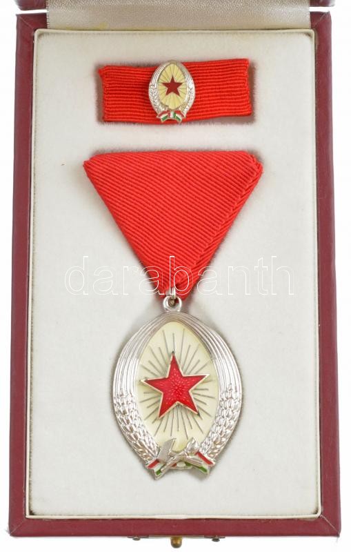 Leírás: 1964. "A Munka Érdemrend" ezüst fokozata, ezüstözött és zománcozott bronz kitüntetés mellszalagon, miniatűrrel szalagsávon, eredeti tokban T:1-