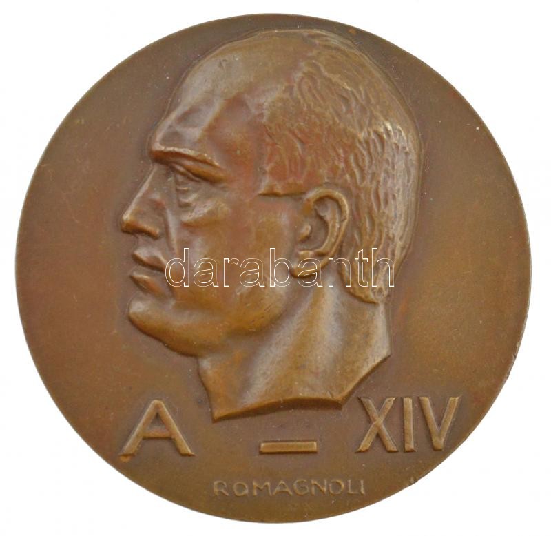 Leírás: Olaszország ~1934. "Mussolini - A - XIV" egyoldalas bronz emlékérem. Szign.: Romagnoli (46mm) T:2