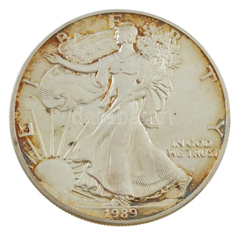 Amerikai Egyesült Államok 1989. 1$ Ag "Amerikai Sas / Walking Liberty" német nyelvű tanúsítvánnyal, műanyag dísztokban T:1,1- patina