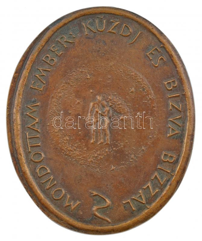 Leírás: DN "Mondottam ember: küzdj és bízva bízzál" egyoldalas bronz plakett (91x75mm) T:2 hátoldalán ragasztónyom