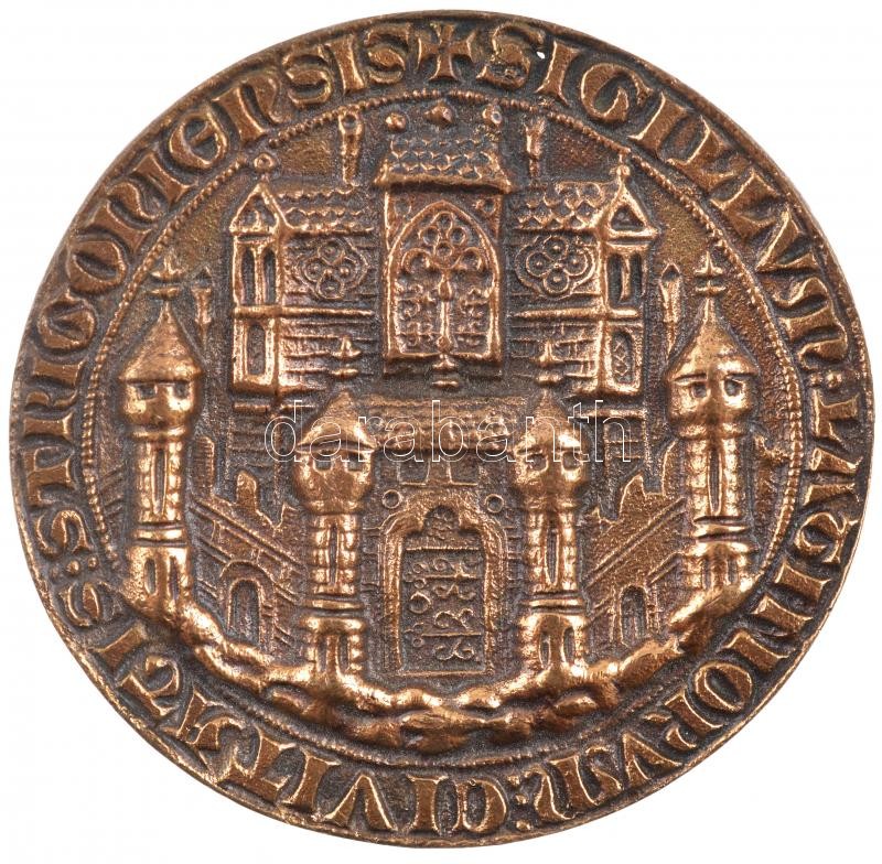 DN "SIGILLUM LATINORUM CIVITATIS STRIGONIENSIS" III. Béla esztergomi pecsétnyomójának egyoldalas fém emlékplakettje, hátoldalán "COPIE" beütéssel (65mm) T:1-