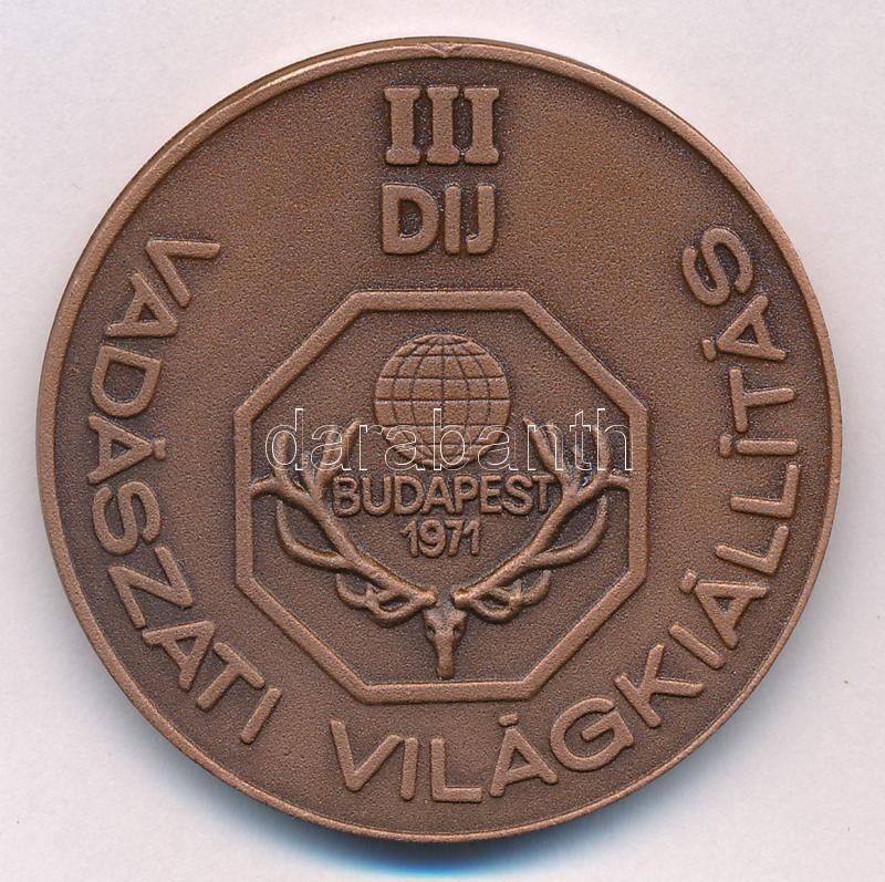 Leírás: Olcsai Kiss Zoltán (1895-1981) 1971. "Vadászati Világkiállítás III. Díj" Br díjérem (45mm) T:1,1-
