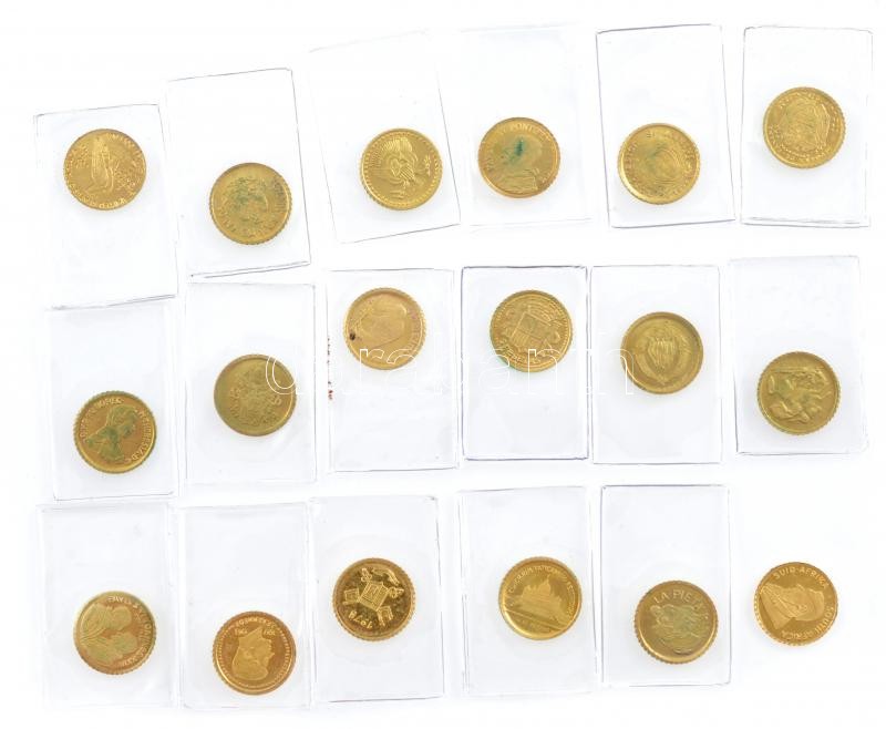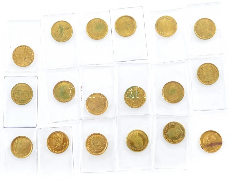 DN 18db klf aranyozott és bizonytalan Au tartalmú mini pénz, egy kivétellel lezárt fóliatokokban (~2g/10mm) T:1,1- patina, 3 karcolva