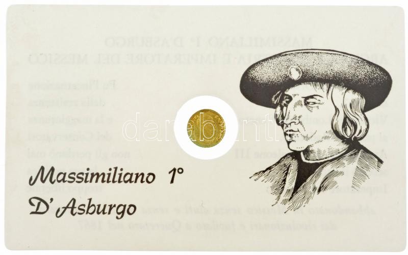 DN "I. Miksa" jelzetlen modern mini Au pénz, lezárt, eredeti műanyag tokban (0.333/10mm) T:1 patina ND "Maximilian I" modern mini Au coin without hallmark, in sealed plastic case (0.333/10mm) C:UNC patina
