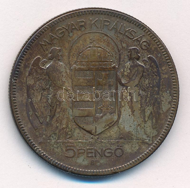 Leírás: 1930. 5P Ag "Horthy jobbra" T:3 patina Adamo P8