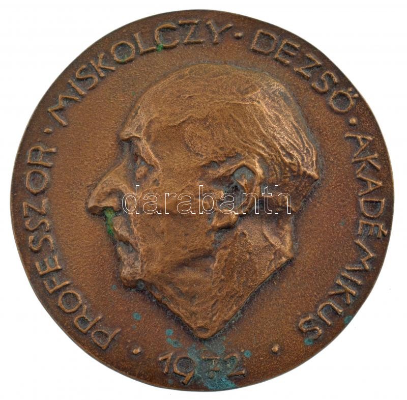 1972. "Professzor Miskolczy Dezső akadémikus" egyoldalas bronz emlékér... https://www.darabanth.com/hu/424-Gyorsarveres/424.0/Numizmatika/Magyar-orvosi-emlekermek-es-plakettek~1500013/1972-Professzor-Miskolczy-Dezso-akademikus-egyoldalas-bronz-emlekerem-81mm-T2-patina~II2694627