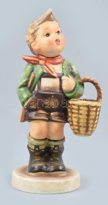 Leírás: Hummel/Goebel kisfiú kosárral, kézzel festett fajansz, jelzett, hibátlan, m: 13,5cm