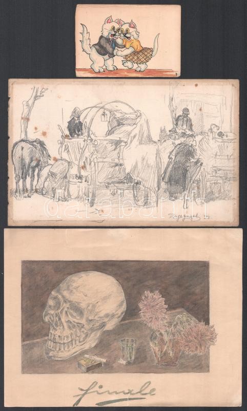 Leírás: Jelzés nélkül: 6 db grafika, vegyes technika, papír