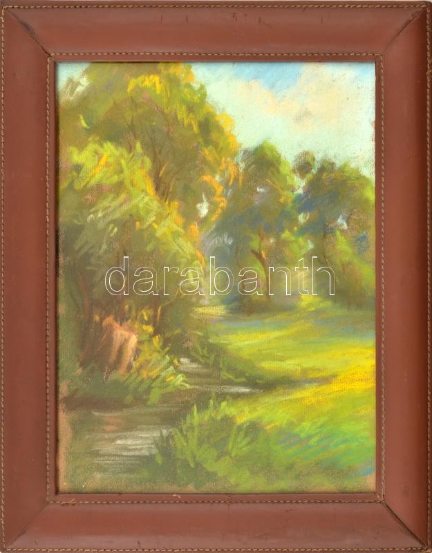Leírás: Bertalan Rózsa (1900-1987): Dunavecsei táj. Pasztell, papír, üvegezett keretben, 29×22cm