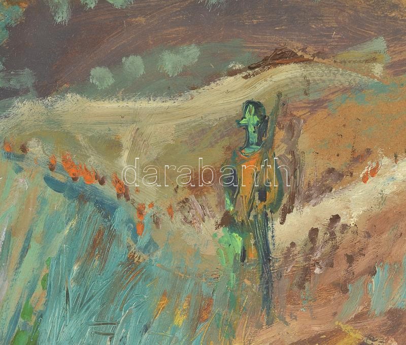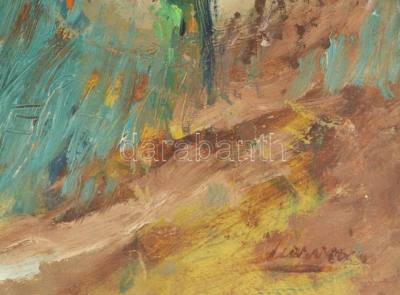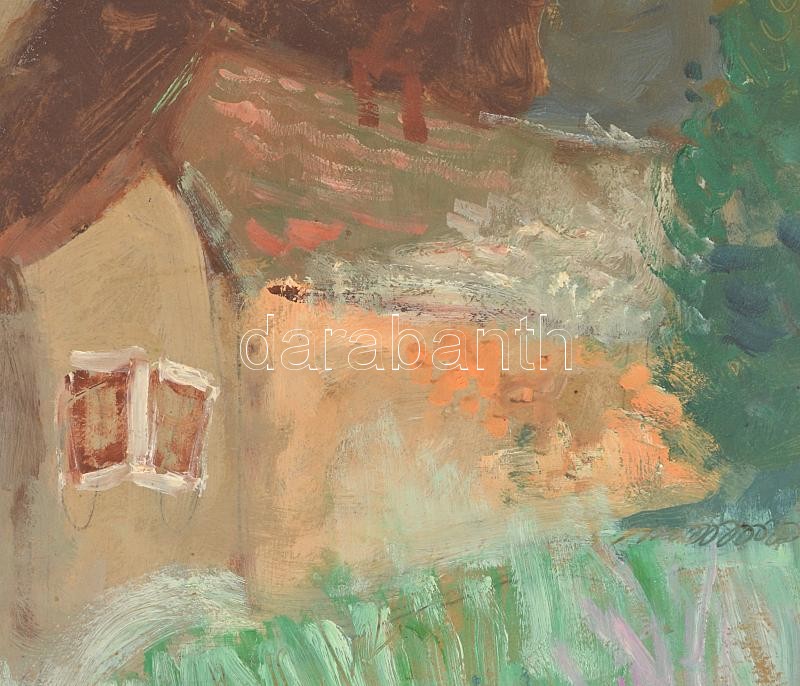 Leírás: Marosán Gyula (1915-2003): Zebegény. Olaj, karton. Jelezve jobbra lent. Vetemedett. Apró sérülésekkel a szélén. Hátoldala foltos. 49×59,5 cm