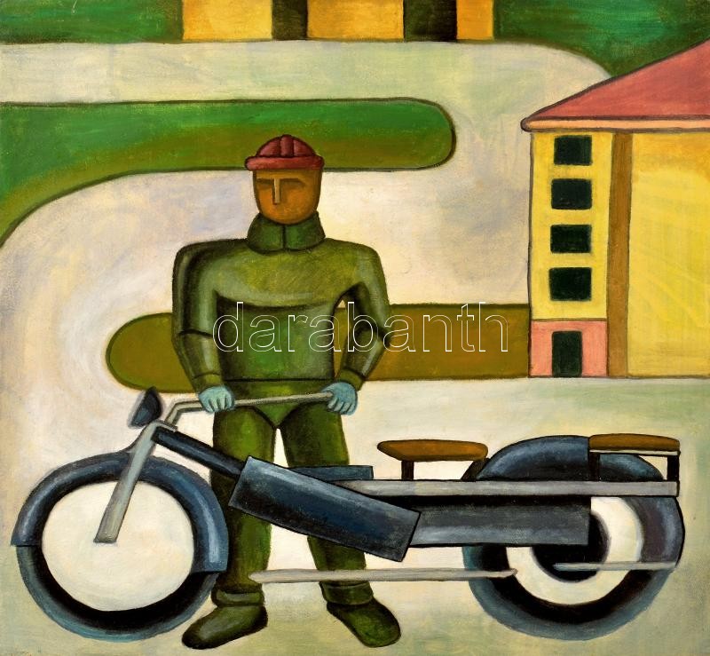 Leírás: Szendrei József (1989-), Bortnyik Sándor után: Motoros. Olaj, vászon. Hátoldalon jelzett. 50x52 cm