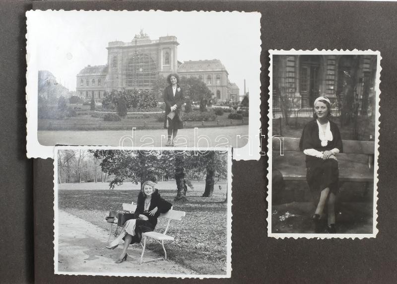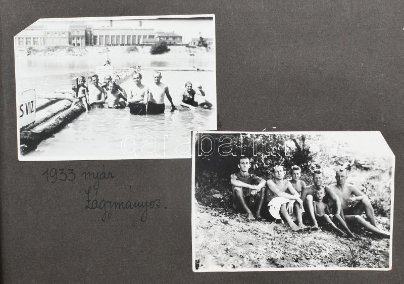 1919-1937 Orsován, Wien-Badenben, Vaskapunál és egyéb helyeken készült csoportképek (Bajor Lloyd Hajózási Rt.) látképek, feliratozva, vegyes méretben, albumba ragasztva