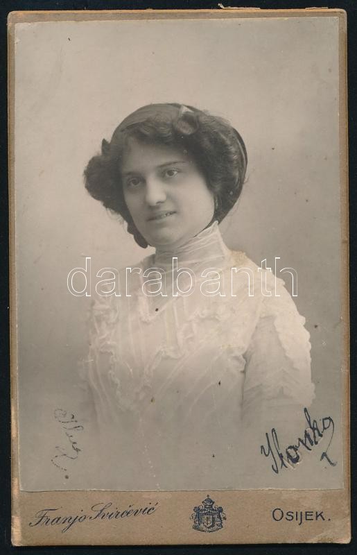 cca 1900 Női portré, keményhátú fotó Franjo Svircevic műterméből, 10,5... https://www.darabanth.com/hu/425-Gyorsarveres/425.0/Fotomuveszet/Foto~500022/cca-1900-Noi-portre-kemenyhatu-foto-Franjo-Svircevic-mutermebol-10-5C3976-5-cm~II2711175