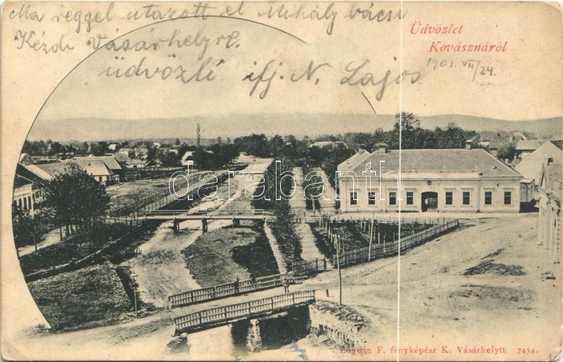1901 Kovászna, Covasna; Járásbíróság, híd. Bogdán F. fényképész / squa... https://www.darabanth.com/hu/425-Gyorsarveres/425.0/Kepeslapok/Erdely~2000006/1901-Kovaszna-Covasna-Jarasbirosag-hid-Bogdan-F-fenykepesz-square-court-bridge-~II2320881