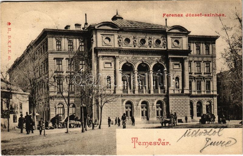 1903 Temesvár, Timisoara; Ferenc József színház, piac / theatre, marke... https://www.darabanth.com/hu/425-Gyorsarveres/425.0/Kepeslapok/Erdely~2000006/1903-Temesvar-Timisoara-Ferenc-Jozsef-szinhaz-piac-theatre-market~II2712478