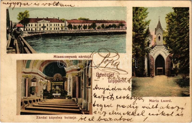 1910 Lippa, Lipova; Miasszonyunk zárdája, Mária Lourd, Zárdai kápolna ... https://www.darabanth.com/hu/425-Gyorsarveres/425.0/Kepeslapok/Erdely~2000006/1910-Lippa-Lipova-Miasszonyunk-zardaja-Maria-Lourd-Zardai-kapolna-belseje-Zeitler-Lajos-ki~II2709840