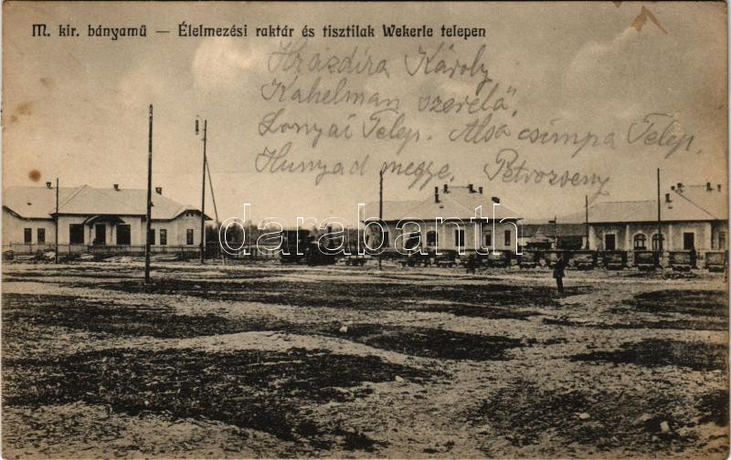 1914 Petrozsény, Petrosani; M. kir. bányamű, élelmezési raktár és tisztilak a Wekerle telepen. Zavetz József kiadása. Attila fényképvállalat / mine, warehouse and officers' houses (fl)