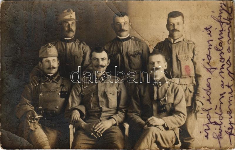 Leírás: 1916 Szászváros, Broos, Orastie; Osztrák-magyar katonák csoportja / WWI Austro-Hungarian K.u.K. military, group of soldiers. Róna Jenő photo (fa)