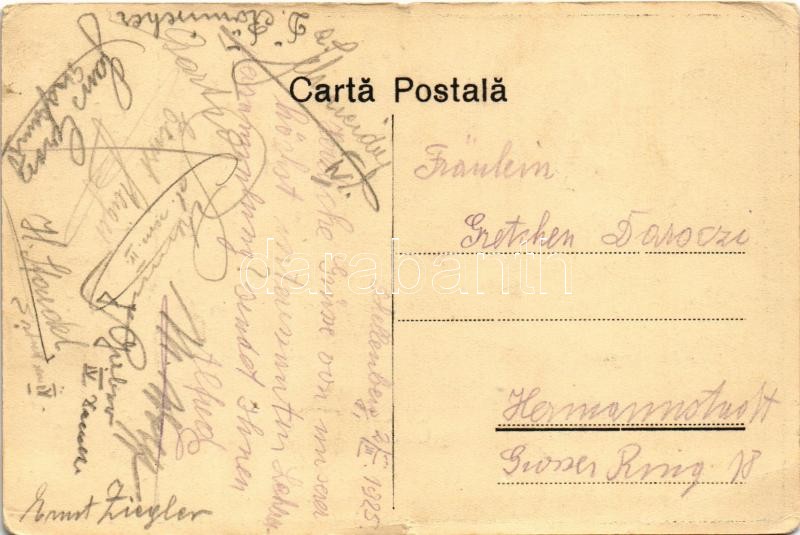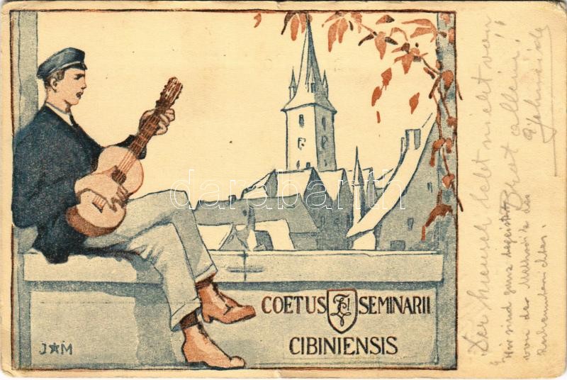 Leírás: 1925 Nagyszeben, Hermannstadt, Sibiu; Coetus Seminarii Cibiensis / diáklap, studentika / Studentica art s: J.M. (EK)