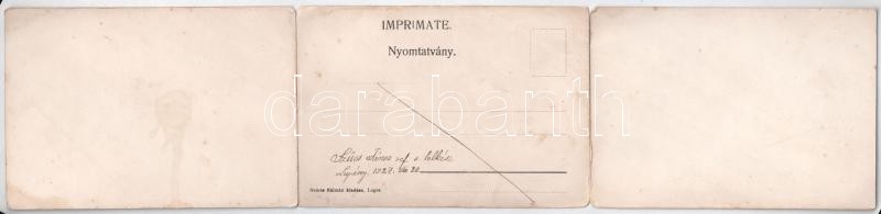 Leírás: Lugos, Lugoj; Három részes kinyitható panorámalap / 3-tiled folding panoramacard (hajtásnál szakadt / bent til broken)
