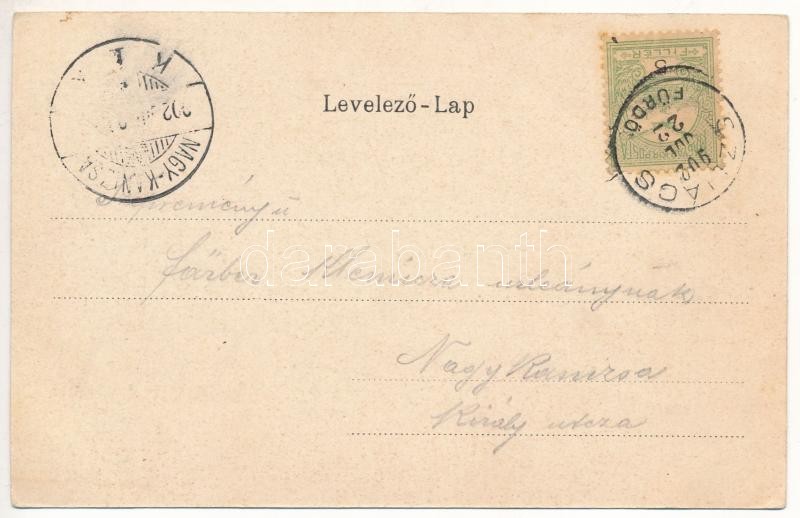 Leírás: 1902 Szliács, Sliac; Szecessziós erdős litho keret / Art Nouveau, forest litho