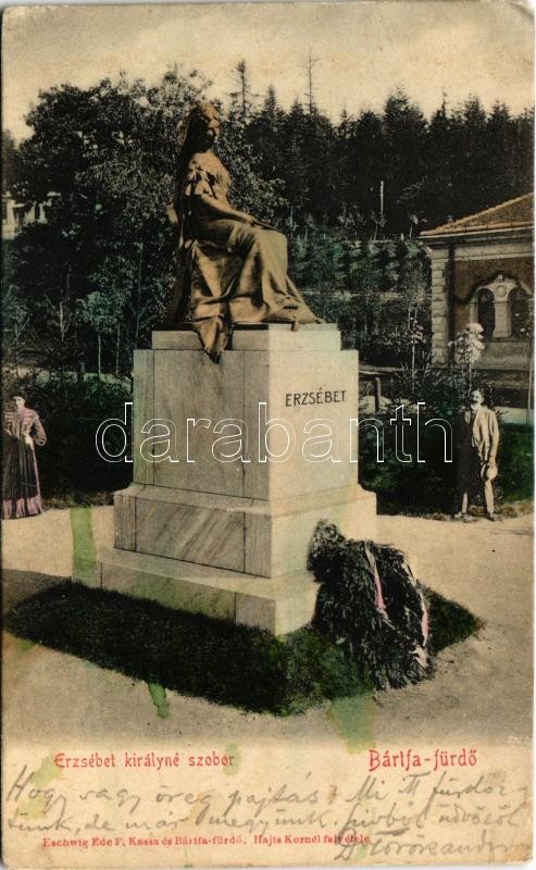 1906 Bártfafürdő, Bardejovské Kúpele, Bardiov, Bardejov; Erzsébet királyné szobor (Sissi). Eschwig Ede F. kiadása és Hajts Kornél felvétele / statue of Empress Elisabeth of Hungary (Sisi) (Rb)