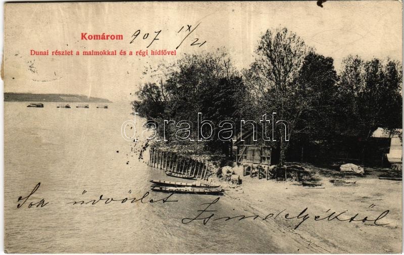 1907 Komárom, Komárno; Dunai részlet a malmokkal és a régi hídfővel, ú... https://www.darabanth.com/hu/425-Gyorsarveres/425.0/Kepeslapok/Felvidek~2000007/1907-Komarom-Komarno-Dunai-reszlet-a-malmokkal-es-a-regi-hidfovel-uszo-hajomalom-EDK~II2710951