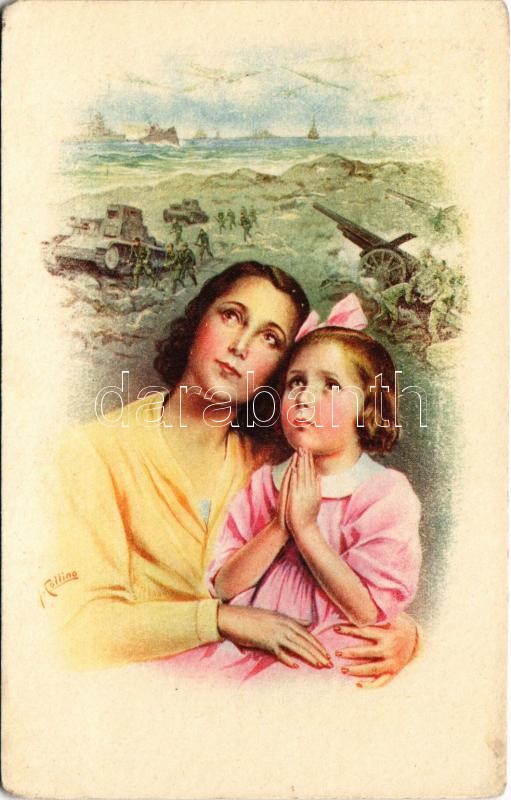 Leírás: Második világháborús olasz katonai művészlap / WWII Italian military art postcard, lady with tanks. Cecami N. 1023. s: Collino (EK)