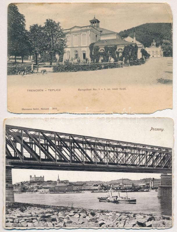 8 db RÉGI felvidéki város képeslap vegyes minőségben: Pozsony, Kassa, Komárom, Losonc, Trencsénteplic / 8 pre-1945 Upper-Hungarian (now Slovakia) town-view postcards in mixed quality: Bratislava, Kosice, Komarno, Lucenec, Trencianske Teplice