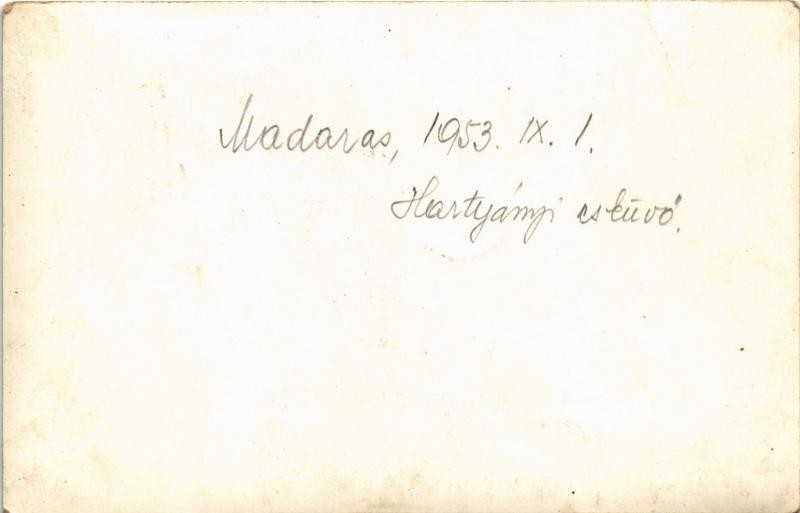 1953 Madaras, Bácsmadaras; Hartyányi esküvő. photo (non PC) (EK) https://www.darabanth.com/hu/425-Gyorsarveres/425.0/Kepeslapok/Magyarorszag~2000005/1953-Madaras-Bacsmadaras-Hartyanyi-eskuvo-photo-non-PC-EK~II2707064