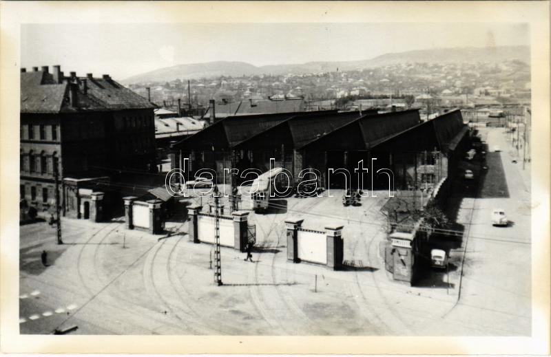Leírás: Budapest XI. Füzesi Árpád főműhely (ma Kelenföld kocsiszín), villamos. Bartók Béla út 135-137. photo