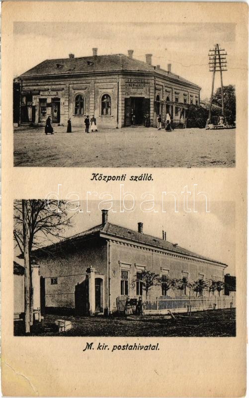 Leírás: Füzesabony, Központi szálloda, vendéglő, étterem, kávéház, Hrasztik Sándor, Wetzner Henrik üzlete, M. kir. posta (r)