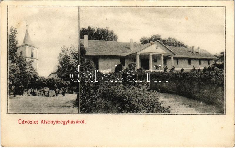 Leírás: Nyáregyháza, Alsónyáregyháza; templom, Wekerle kúria, kastély