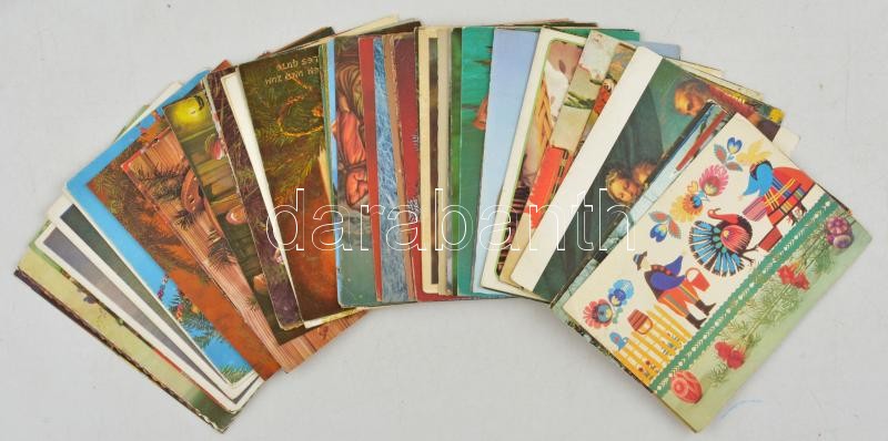 62 db MODERN motívum képeslap: főleg egyházi és ünnepi üdvözlőlap díjjegyesekkel (magyar, román, szerb, német, lengyel, szovjet) / 62 modern motive postcards: mostly religious and greetings (Hungarian, Romanian, Serbian, German, Polish, Soviet)