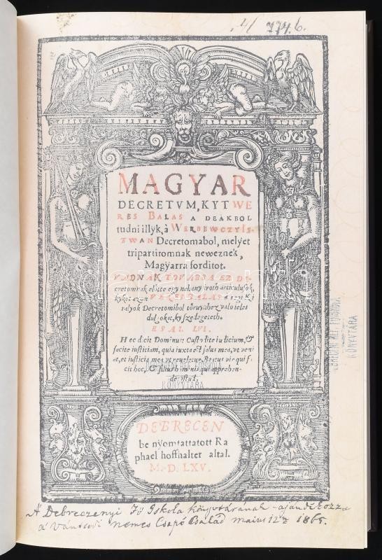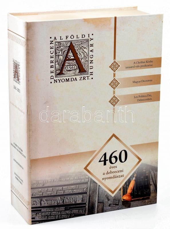 460 éves a debreceni nyomdászat az Alföldi Nyomda. 4 db értékes könyv facsimile kiadását tartalmazó téka: Werbőczy Magyar decretum, Méliusz Juhász Péter: A Christus közbe járásáról valo predicacioc, Lipsai Pál: Lex politica del Debrecenben. Mindegyik korhű, dombornyomott műbőr kötésben. Hozzá kísérő tanulmányokkal.