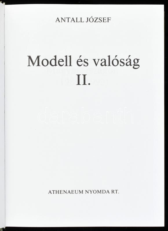 Antall József: Modell és valóság. I-II. köt. (Válogatott tanulmányok). Bp., 1994, Athenaeum. Kiadói kartonált kötés, kissé foltos lapélekkel, egyébként jó állapotban.