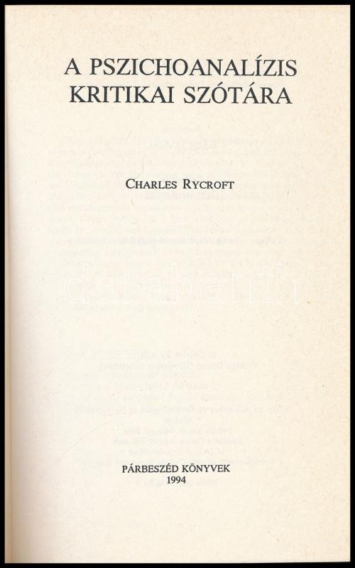 Rycroft, Charles: A pszichoanalízis kritikai szótára. 1994, Párbeszéd ... https://www.darabanth.com/hu/425-Gyorsarveres/425.0/Konyvek/Konyvek-Termeszettudomany-medicina~1000015/Rycroft-Charles-A-pszichoanalizis-kritikai-szotara-1994-Parbeszed-Konyvek-Kiadoi-papirk~II2704423